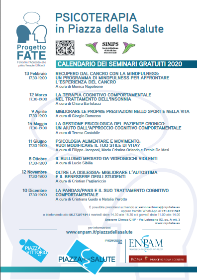 Il seminario si inserisce nel progetto Fate (Favorire l’Accesso alle psicoTerapie Efficaci) svolto dal CRP nell’ambito del progetto Piazza della Salute.