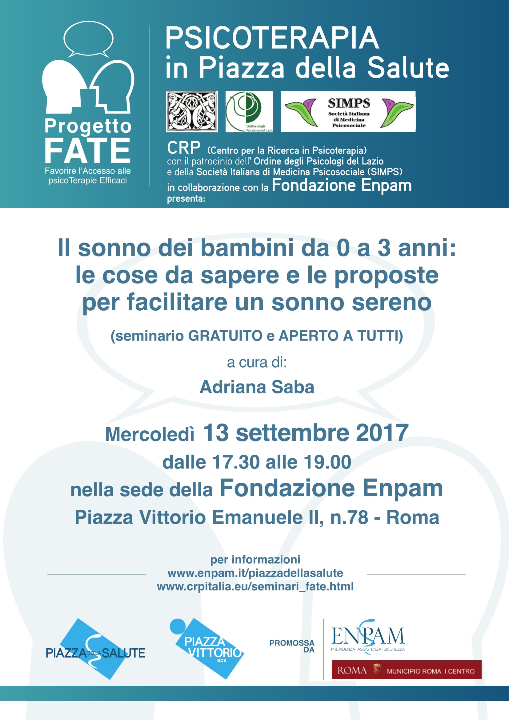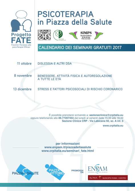 Nell’ambito del progetto “Piazza della Salute” presenta l’iniziativa FATE per favorire l’accesso alle psicoterapie efficaci.