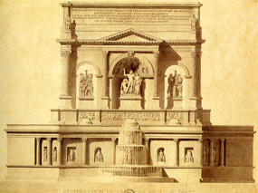- Nel progetto grande attenzione è stata riposta nella valorizzazione del patrimonio archeologico della piazza. Non è la prima volta che i suoi monumenti destano curiosità e ammirazione perchè nei secoli passati molti archeologi e studiosi si sono cimentati nella ricostruzione più o meno fantasiosa per esempio dei “Trofei di Mario” come testimonia l’immagine in fondo al paragrafo di una stampa ottocentesca di un lavoro di Antoine Martin Garnaud. Ma in più Piazza Vitttorio può divenire un polo di attrazione turistica di prim’ordine tenendo presente che tra breve tempo sarà possibile ammirare gli interessantissimi reperti ritrovati durante la costruzione del parcheggio sotterraneo del nuovo palazzo dell’ ENPAM e che qualche anno fa una campagna di scavo proprio sotto i giardini portò alla luce dei resti elegantissimi di una villa patrizia (Horti Lamiani) dell’antica Roma (vedi l’articolo tecnico finale in file.pdf)