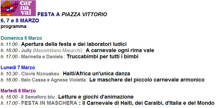 * Ore 16.00 Le parole del carnevale, lettura di testi carnevaleschi a cura Parole incontro