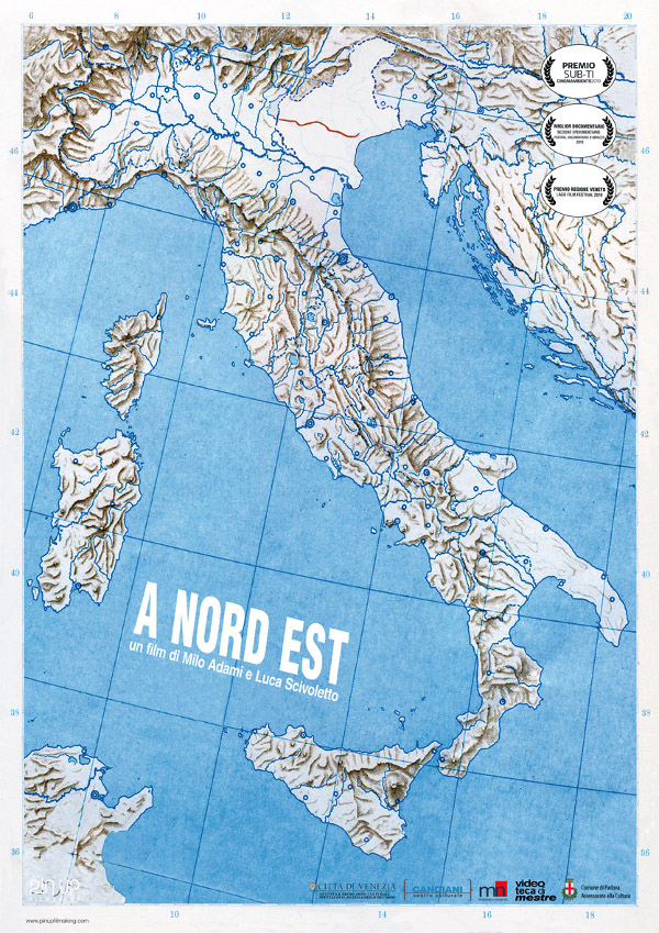 Regia: Milo Adami e Luca Scivoletto – Fotografia: Corrado Serri – Montaggio: Alice Roffinengo – Musiche Originali: Alice Coppo – Suono: Mirko Perri – Produzione: Milo Adami e Luca Scivoletto – Coproduttore: Pinup filmaking e Michele Armenia.Milo Adami (Roma,1981) dopo gli studi in Storia dell’Arte a Roma si specializza in arti visive allo IUAV di Venezia. Qui comincia a lavorare con la perfromance e la videoarte frequentando i laboratori di Joseph Kosuth, Grazia Toderi e Antoni Muntadas. Il suo primo cortometraggio, Periferica di gruppo, è prodotto dal MART di Rovereto nel 2006. Nel 2008 insieme ad amici registi e produttori fonda la Pinup filmaking, società indipendente produttrice di documentari. Nel 2010, con a Luca Scivoletto, firma la regia di A nord est. Dal 2011 ad oggi è autore di piccoli e medi documentari per la televisione e per il web. Attualmente sta lavorando alla realizzazione di un suo nuovo cortometraggio.
