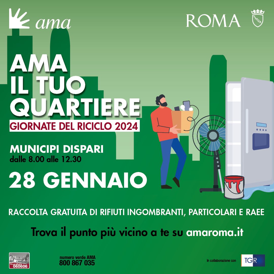 Ama provvederà a differenziare secondo la categoria merceologica (legno, ferro, plastica, altri metalli, ecc.) i rifiuti riciclabili raccolti e ad avviarli alle rispettive filiere di recupero. Si ricorda inoltre che l’azienda mette quotidianamente a disposizione dei cittadini altri due canali per disfarsi gratuitamente dei rifiuti ingombranti, elettrici ed elettronici, che non devono essere assolutamente conferiti nei cassonetti stradali: i 14 centri di raccolta aziendali aperti tutti i giorni e, dallo scorso 1 dicembre, il servizio di ritiro a domicilio al piano strada per i materiali fino a 2 metri cubi di volume. Il servizio può essere prenotato tramite il ChiamaRoma 060606 oppure compilando l’apposito modulo di richiesta nella sezione Servizi on-line