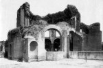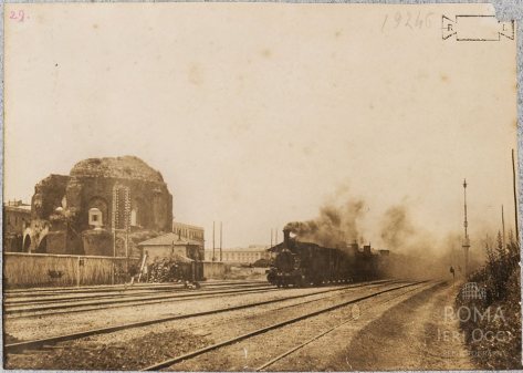 Anche una persona a digiuno di qualsiasi cognizione tecnica al solo vedere il cd. Tempio di Minerva Medica avrebbe pensato che la parte verso via Giolitti  fosse quella con i maggiori problemi statici visti i crolli che avevano caratterizzato il monumentio nel 1829 in occasione di una forte scossa tellurica. Ed il fatto che mancassero completamente non solo la porzione di cupola ma anche le arcate che la sorreggevano (nella foto il monumento ritratto ai primi del ‘900) doveva far pensare che non era il caso di esporlo ad altre sollecitazioni di natura statica. Ma così non fu, e vinsero le considerazioni economiche che portarono alla costruzione della ferrovia da parte di un privato (ing. Clementi) la cui  premura era quella di creare una linea che trasportasse il materiale per  la posa in opera dei sampietrini,  le maestranze addette al carico e allo scarico dei questa merce e gli operai specializzati per preparali e   posizionarli sulle strade. Solo negli anni ’20 quando la società privata che la gestiva fallì, la proprietà della ferrovia passò all’amministrazione pubblica.