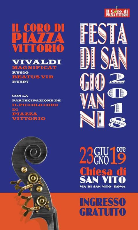 ore 19.00 – 20.00 Chiesa di San Vito – Coro di Piazza Vittorio e Piccolo Coro di piazza Vittorio diretti dal maestro Giuseppe Puopolo,
