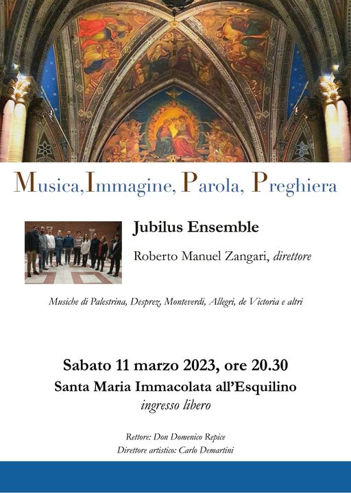 MUSICA, IMMAGINE, PAROLA, PREGHIERA – La rassegna continua con l’ormai consueto appuntamento nella festività dell’Immacolata Concezione della Vergine Maria. Il trio Accademia Antica ci condurrà in un percorso attraverso la musica barocca, che darà inizio ad un cammino in cui ogni concerto sarà legato ad una delle vetrate della “nostra” chiesa, e guidato dalle riflessioni del rettore don Domenico. Vi aspettiamo quindi venerdì 8 dicembre alle 16 nella Chiesa di Santa Maria Immacolata all’Esquilino!