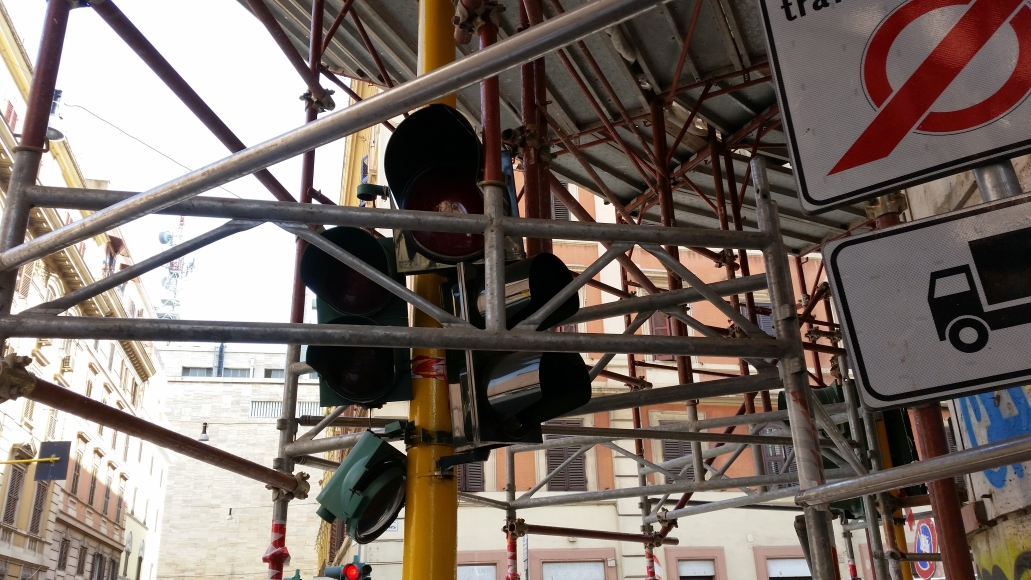 Come se non bastasse il fatto che, come abbiamo ripetutamente denunciato, l’impianto semaforico tra via Bixio e via Principe Umberto funziona (da anni) male, la scorsa settimana si è rotto pure il supporto con cui un semaforo è assicurato al palo e per qualche giorno è rimasto appeso solo grazie ai fili elettrici in una condizione di estremo pericolo per i passanti risultando poi del tutto invisibile (e inservibile), complice anche il relitto del cartello di divieto di accesso, per le autovetture. Sul sito del comune è apparsa la notizia che saranno sostituiti 2400 impianti semaforici a incandescenza con lampade a led di ultima generazione (vedi). Non osiamo ambire ad una sciccheria del genere ma almeno a un semaforo attaccato bene e funzionante almeno sì. Statisticamente è però strano che alcuni semafori di questa parte dell’Esquilino (via Giolitti, viale Manzoni, via Principe Umberto) siano spesso vittime di strani accadimenti (vedi anche questo post) : supporti che si rompono, semafori rivolti in senso sbagliato, lampade che si fulminano in quantità industrale. Sarà solo un caso ?