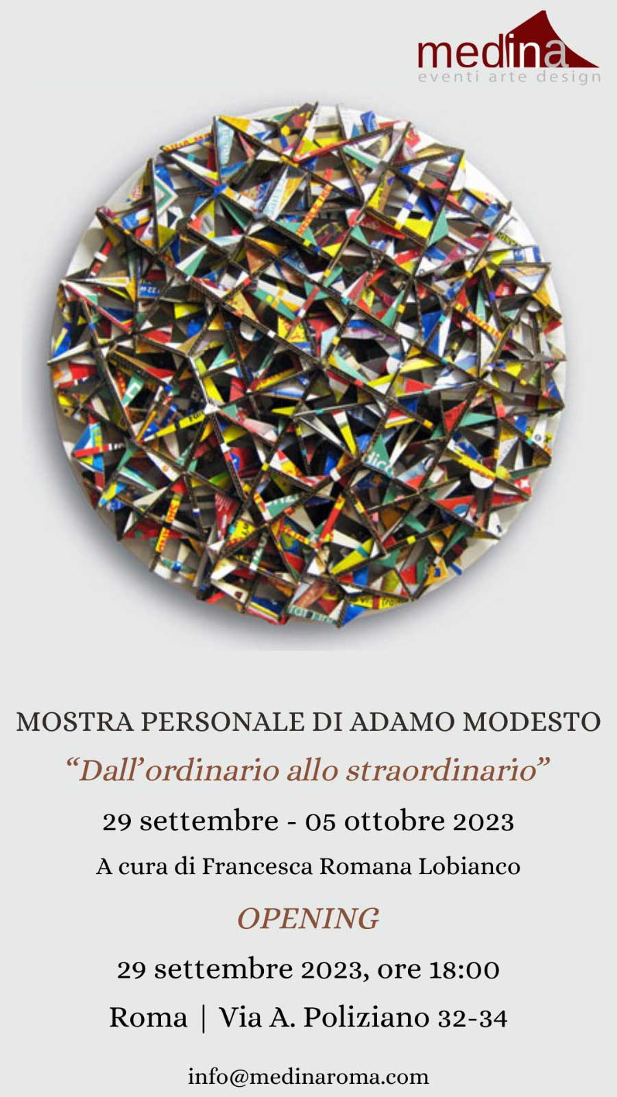 Dal 29/9 al 5/10/23 “Dall’ordinario allo straordinario” Mostra personale di Adamo Modesto al Medina Art Gallery