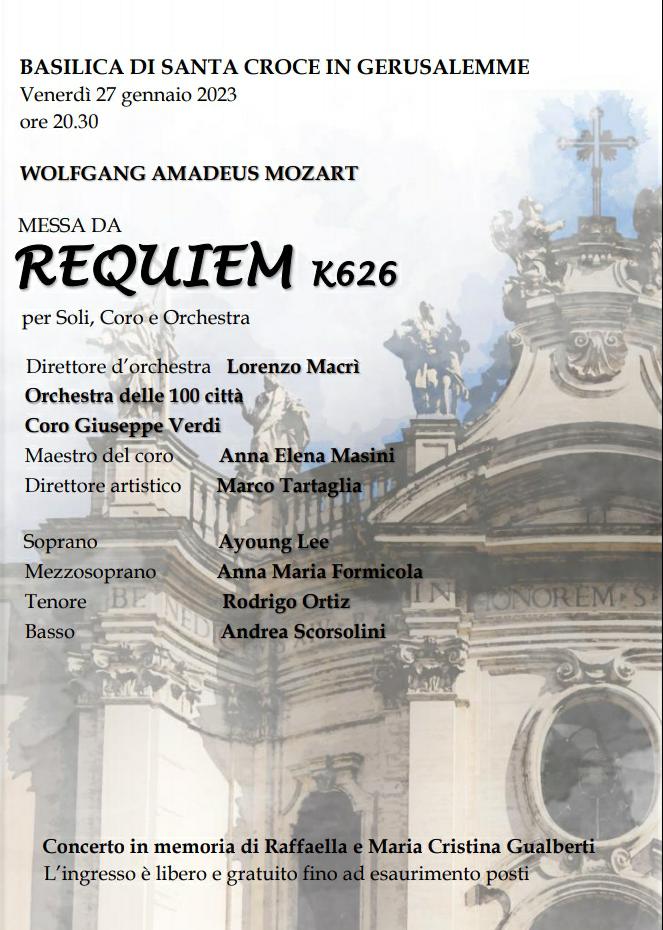27/1/23 “W. A. Mozart – Messa da Requiem K626” presso la Basilica di Santa Croce in Gerusalemme